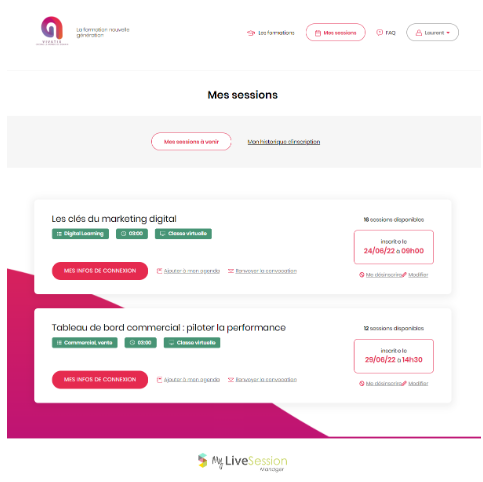 Nous pouvons aussi gérer nous même l’administration de vos classes virtuelles sur Mylivesession Manager, ce qui représente une charge de travail en moins pour vos équipes.