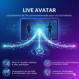 Le Live Avatar, innovation développée par Live Session, met la puissance de l’IA conversationnelle au service des formations en live. Il permet de créer des interactions réalistes, personnalisées et immersives, idéales pour les mises en situation.