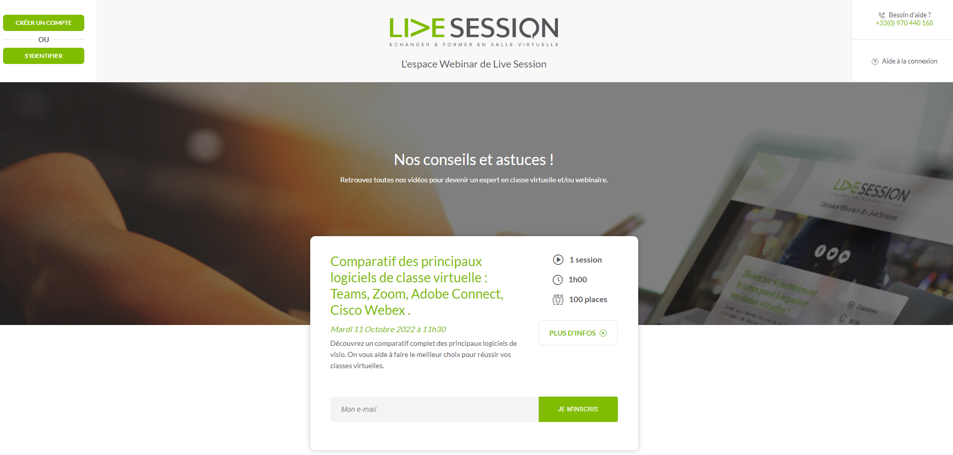 Prévoyez aussi de faciliter l’inscription et la connexion à votre événement. Chez Live Session nous utilisons Mylivesession Webinar, notre plateforme de déploiement des événements en ligne. La mise en ligne de la page d’inscription ainsi que l’ensemble des messages transactionnels (email d’invitation, de rappel, lien de connexion en 1 clic, rappel SMS) sont grandement facilités.